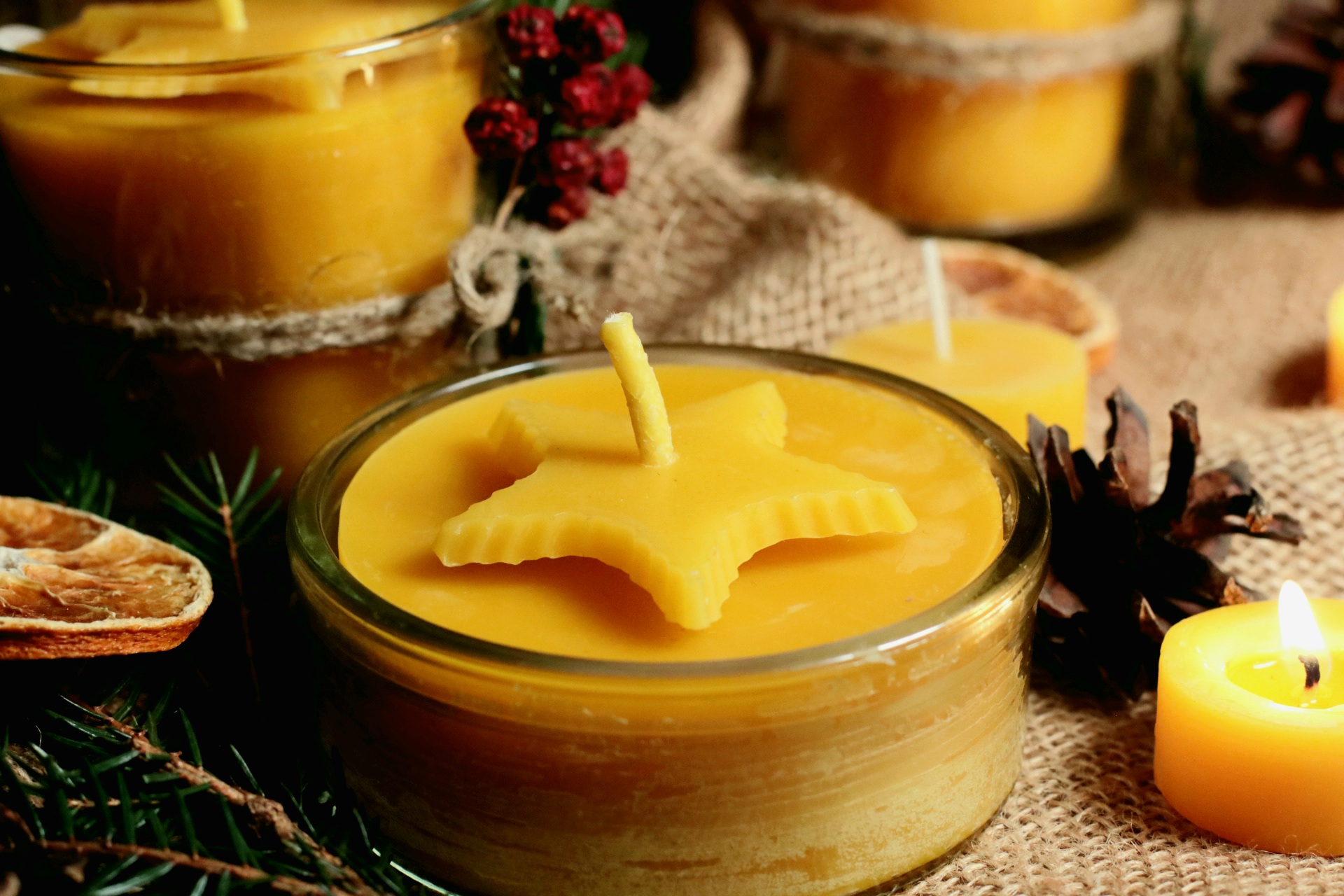 Rankų darbo bičių vaško žvakės – vertinantiems natūralumą, švarius, tradicinius produktus, rankų darbą. Tai klasikinės formos žvakė stikliname indelyje, kuri puikiai tinka šventiniam stalui ar namų dekorui. Bičių vaško žvakės yra netoksiškos, neteršia aplinkos, nesukelia alergijos, jas gali naudoti visi, kurie jautrūs chemikalams, kvapams ar turi įvairių alergijų. Bičių vaško žvakės dega dvigubai ilgiau negu parafininės, jos nesmilksta, degdamos neskleidžia toksiškų medžiagų, o priešingai – valo orą ir švelniai kvepia medumi. Garantuotas jaukumas Jūsų namams bei puiki dovana artimiesiems.