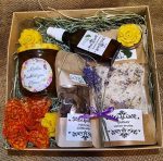 Mini rinkinį sudaro 200ml medus su personalizuota etikete, 30 ml raktažolių (ar kitoks, galima pasirinkti) hidrolatas, vaškinė drobelė ir natūralaus bičių vaško žvakutė-pelėdžiukas.
